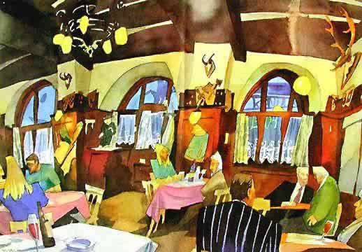 レストランの絵はがき