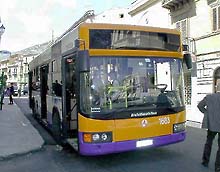 市内循環バス【写真】は町中で頻繁に停車をくり返し、やがて郊外に走り出た。丘を上り切った高台に建つモンレアーレの大聖堂前が、バスの終点であった。大聖堂前の広場には、沢山の屋台が並び、広場を取り巻くようにしてレストランや土産品店が軒を連ね、この場所だけが集中的に観光客で賑わっていたように思う。