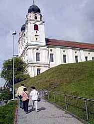 ホテル前から乗用車で南下、フォルダーライン川に沿って走る道には、古くからの集落があり、その中の一つに絵本作家として世界的に名高いカリジェの生まれたトルン(Trun)村が在った。中世時代に建てられたと思われる教会の建つ集落もあった。丘の上に建つディセンティス修道院にも寄ってみたが、中に入ることは出来なかった。この修道院は、存亡に関する幾多の古い歴史があって、ドイツ皇帝による援助とか19世紀初頭のフランス兵による村破壊などの悲劇を経て今日に至っているらしい話を圭子さんに聞かせてもらったので、印象的な修道院として忘れられないものになることだろう。ディセンティスの丘にて、記念の撮影をした。