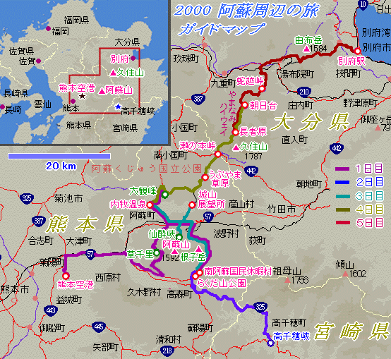 | 5日目(5月12日) | 晴 | 大観峰→産山→瀬の本高原→飯田高原・朝日台→長者原(泊) |