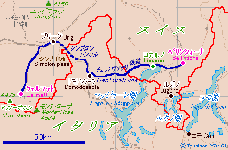 ブリーク <Brig> で国際列車に乗り換え、シンプロン峠